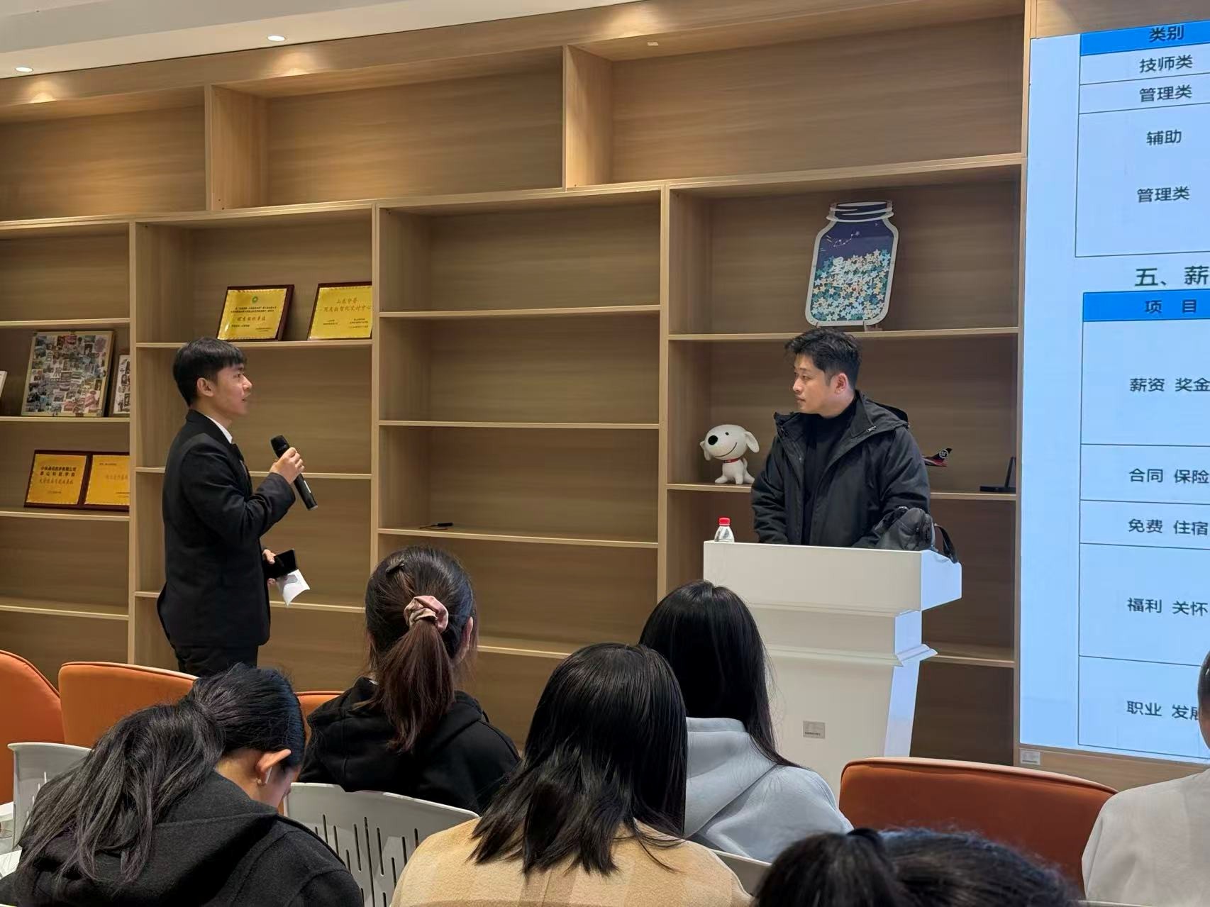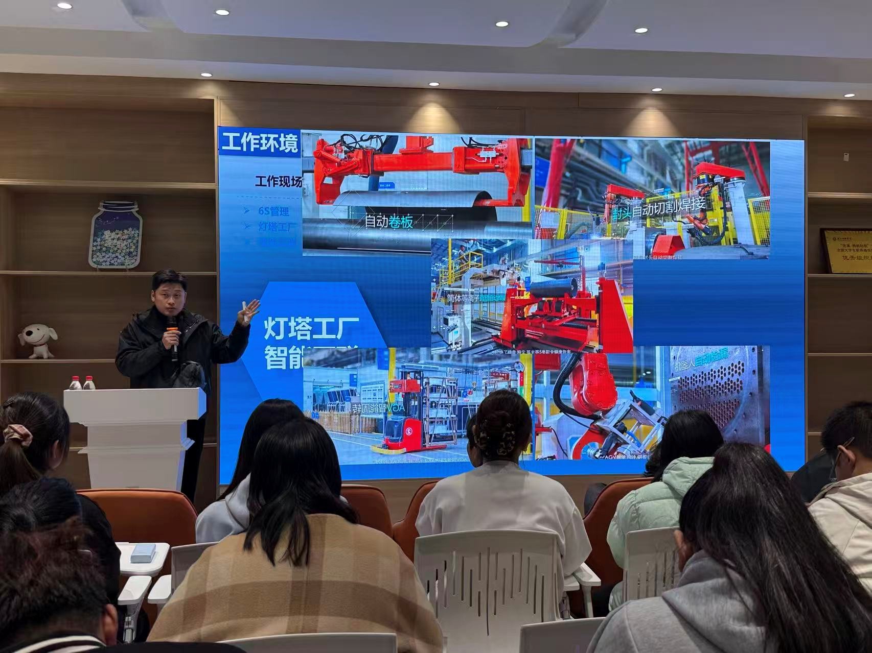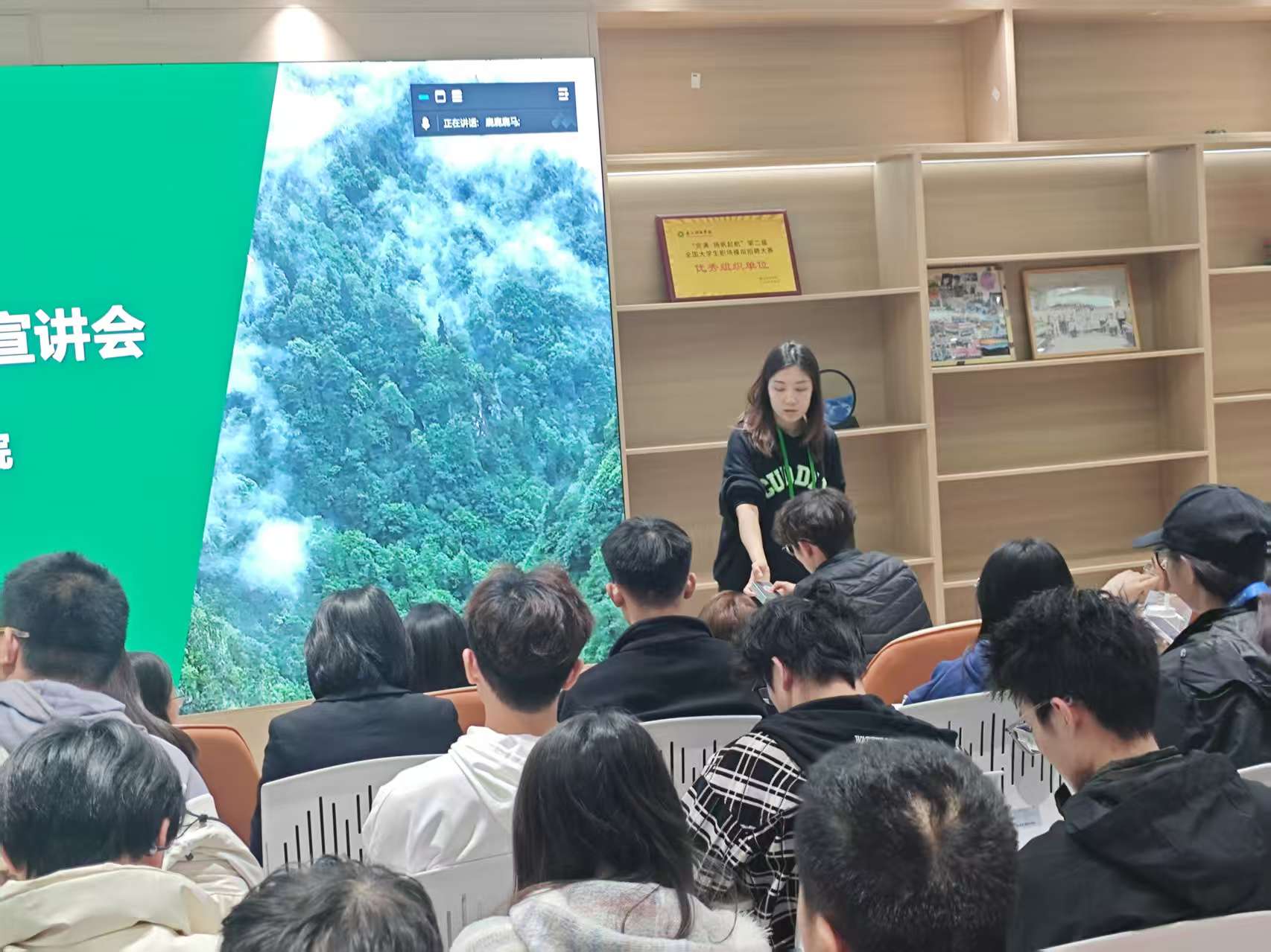 源氏木语宣讲会气氛热烈。招聘负责人介绍了公司从电商起步、深耕成国内领先纯实木家具品牌的历程,阐述 “用好木头,做好家具” 的企业文化与 “做健康家具,创美好生活” 的愿景,详解完善的人才培养与清晰晋升通道,展示木材选材、工艺设计创新及智能制造升级的核心优势。互动环节,同学们围绕仓储、新零售管培生等岗位的职责、晋升、培训与工作模式踊跃提问,问题聚焦专业能力与个人成长,公司代表耐心解答,现场交流深入、氛围融洽。
