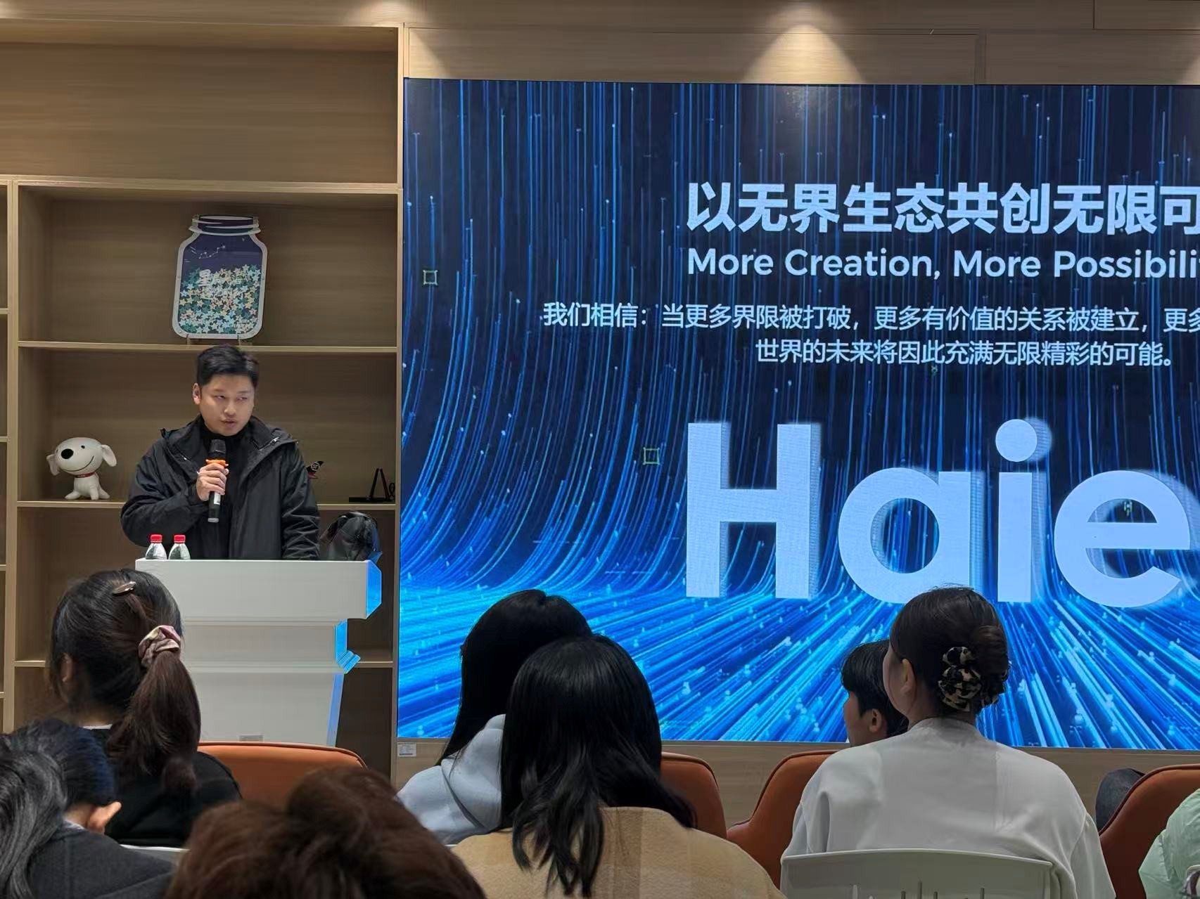 2025年10月30日上午,海尔集团校园宣讲会在双体路演大厅顺利开展。本次宣讲会对海尔概况、岗位待遇、投递路径进行介绍。