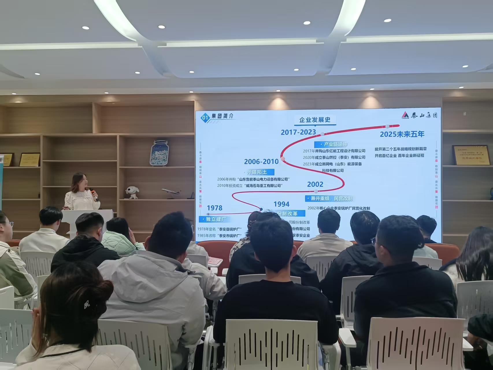 2025年10月29日下午,泰山集团校园招聘宣讲会在双体路演大厅热闹开讲。