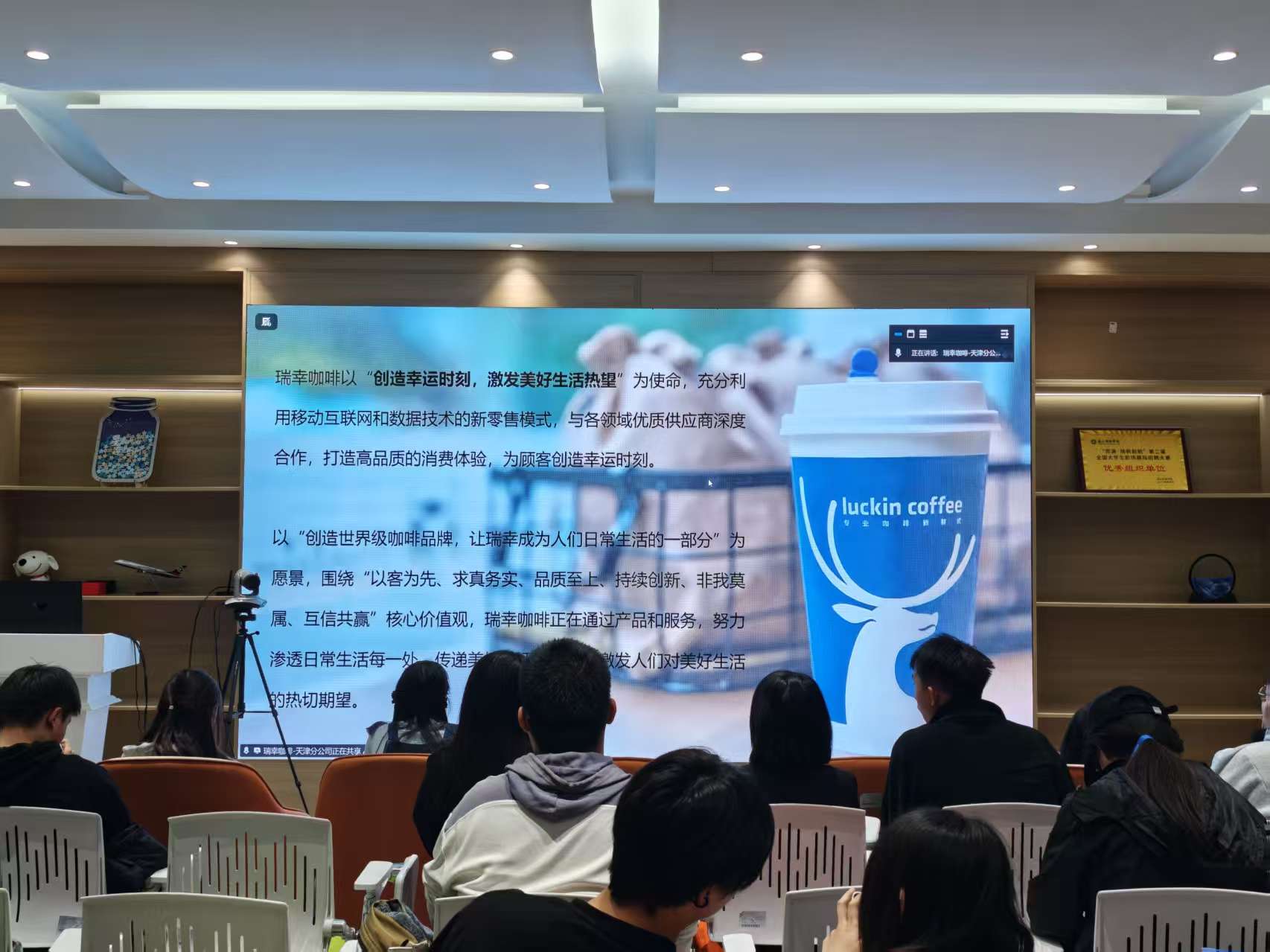 2025年10月30日下午,中国领先的新零售咖啡品牌瑞幸咖啡在路演大厅成功举办校园招聘宣讲会。瑞幸咖啡的招聘负责人解芳老师首先全面介绍了公司从创立到成为中国门店数量最多的咖啡连锁品牌的快速发展历程。