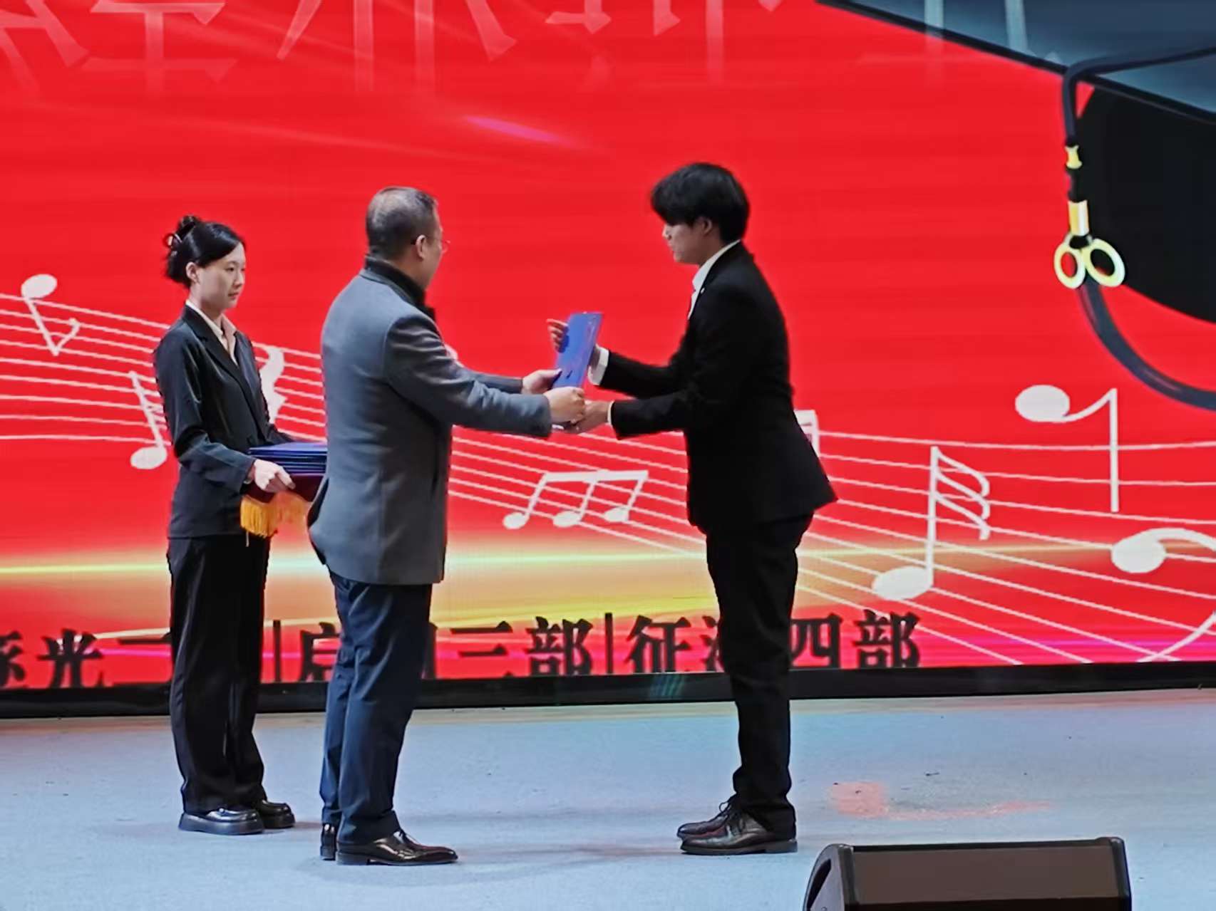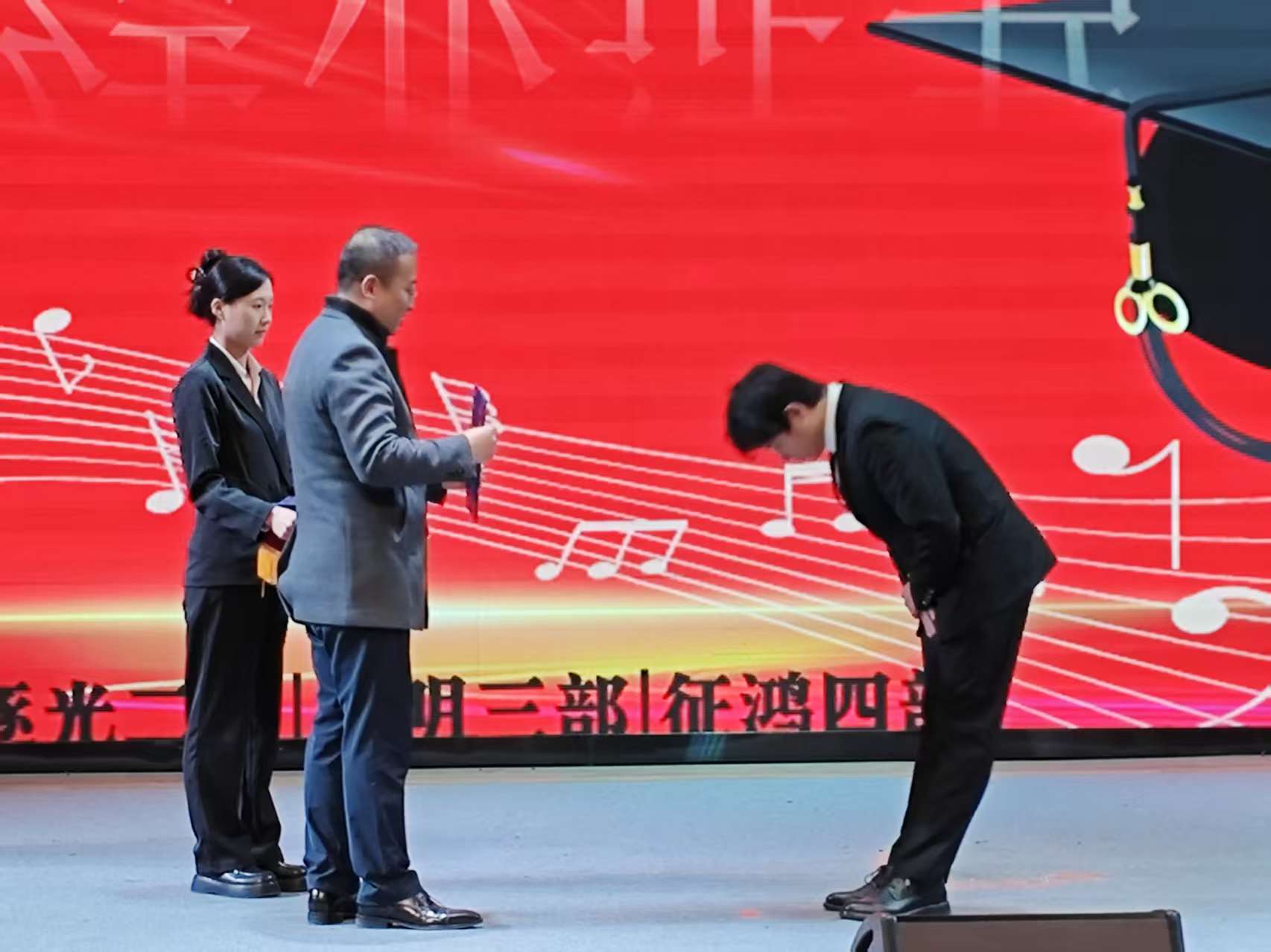 当激昂豪迈的音乐在会场轰然奏响,任院长带着欣慰的笑容,将结业证书逐一递到九期学员手中。学员们以郑重姿态接过,眼底满是奋斗后的喜悦与对未来的憧憬——那些在代码世界里披荆斩棘的日夜、与团队伙伴激烈争辩的时刻、攻克技术难关后的欢呼雀跃,都化作此刻眼眶里打转的热泪。这张证书,是四个月披荆斩棘的成长印记,更是叩响未来的钥匙 —— 学员们将携双体所学为铠甲,奔赴山海,续写属于自己的人生传奇。
