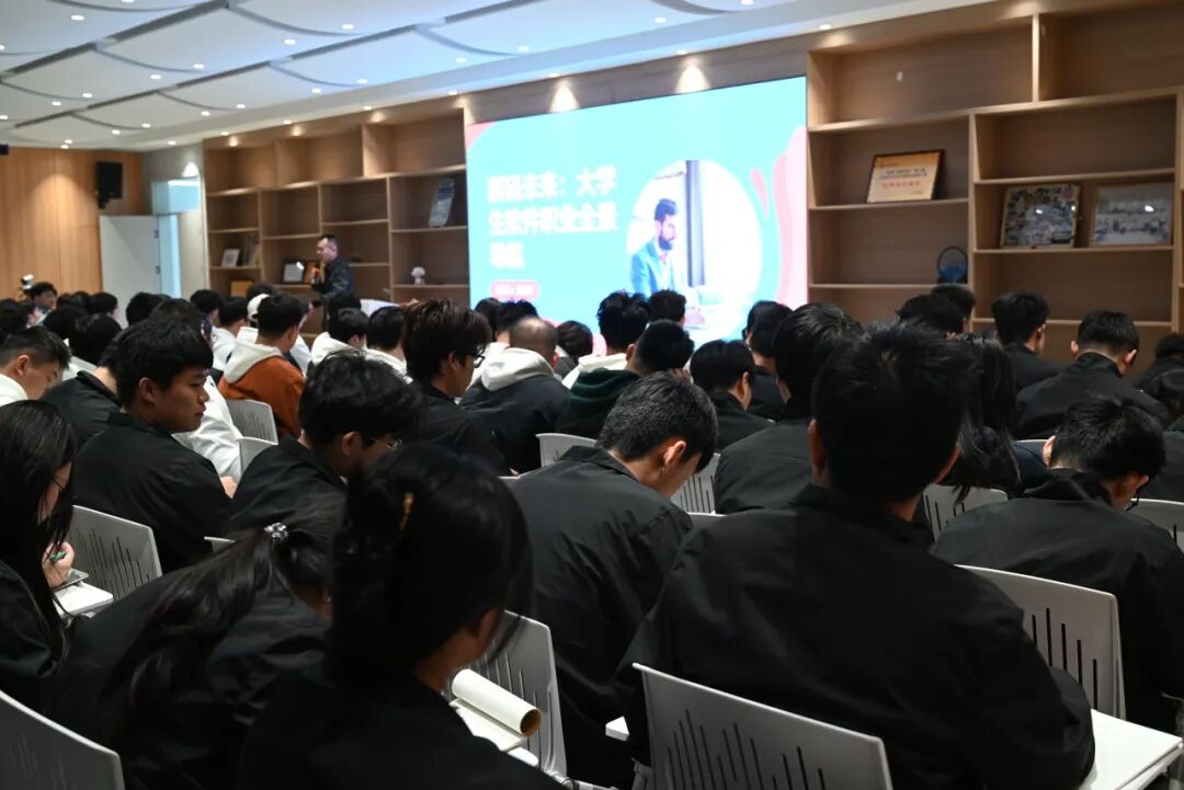 任院长从“有梦想的人”切入,带领学员回顾过往成长,剖析影响目标实现的关键因素,强调面对困难要“搞定它,不是绕过它”。他引导学员思考“他们眼中的我”与“你们眼中的自己”,鼓励大家在双体养成成熟稳重的素养,实现从求职到思想觉醒的蜕变。