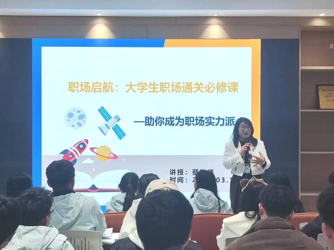 3月10日下午,双体学院职场培训经理蔡艳清老师为全体学员们开展了《职业启航:大学生职场通关必修课》,四个项目部齐聚一堂,蔡老师引导学员们积极互动,用幽默风趣的语言活跃了现场的氛围,带领学员了解并进一步深入学习职场的基本功,从求职,沟通,突发事件,接受任务,事件的处理方式,与领导,同级,下属关系的交流方式,等方面深入讲解。