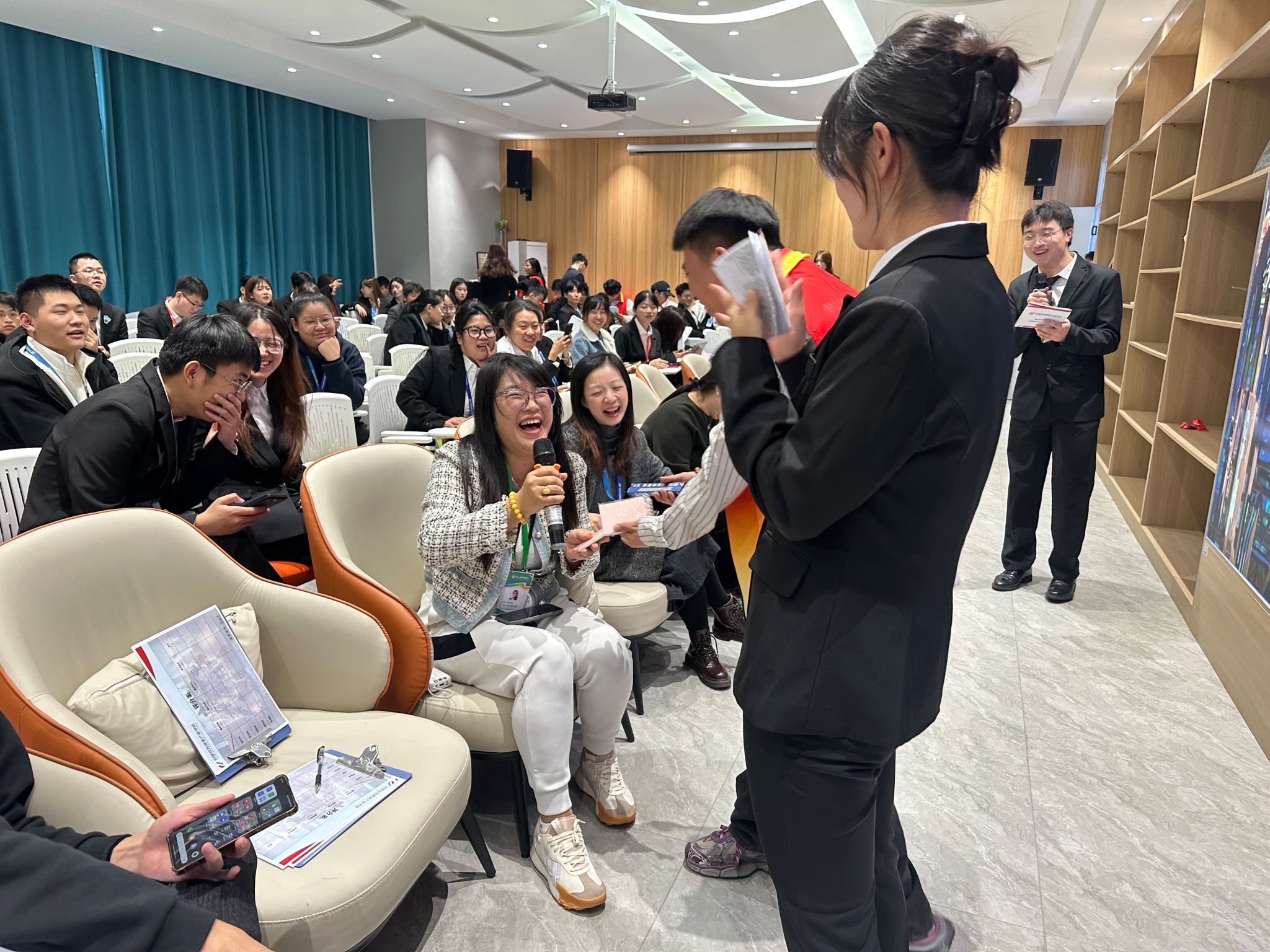从职场与技术老师手中接过象征责任与使命的工作牌。他们是部门的“擎天柱”,肩负引领方向、凝聚力量的重任。随后,品宣总监郭靖与新任基地总经理范鑫也接受授牌,他们将带领双体团队向更高目标发起冲刺。