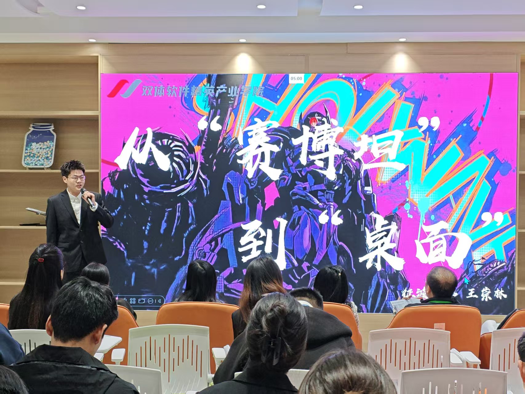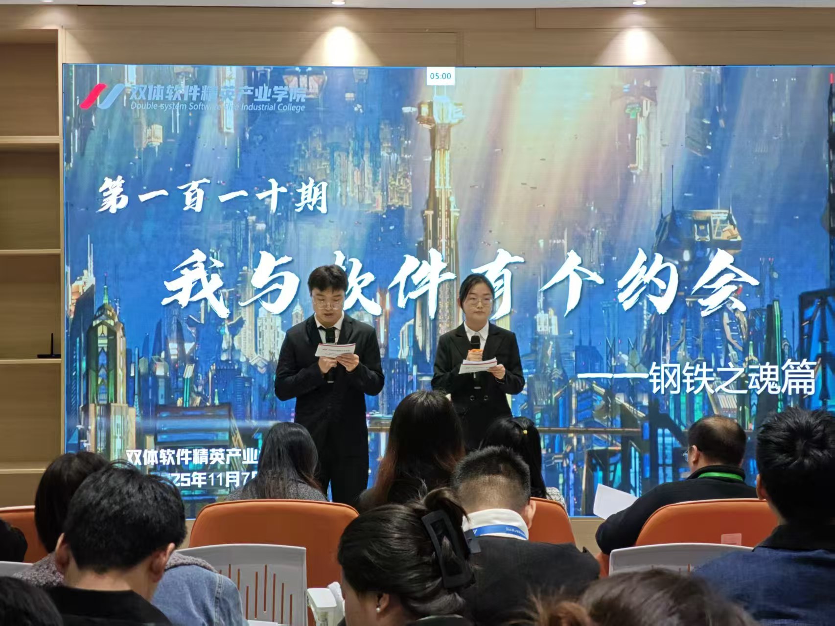 2025年11月7日下午,泰山科技学院双体软件精英产业学院第110期“我与软件有个约会”之“变形金刚-钢铁之魂篇”在路演大厅隆重举行。整场活动以“钢铁集结,代码为甲”为主题,将软件技术与变形金刚的英勇精神巧妙融合,呈现了一场科技感与热血感交织的视听盛宴。