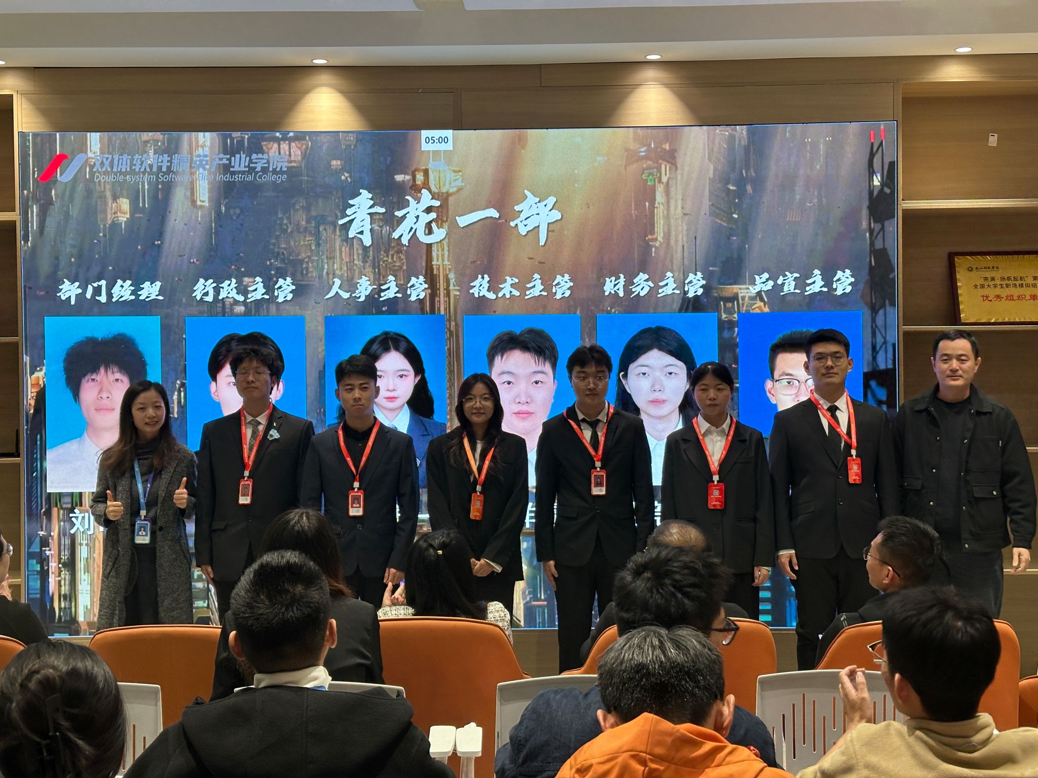 在部门文化展示环节,青花一部成员以激昂的部歌点燃全场,歌声中饱含团结与热血,展现了双体学子昂扬向上的精神风貌。每一句歌词,都是他们对团队的热爱与承诺;每一个音符,都在传递着“我们是一个整体”的坚定信念。