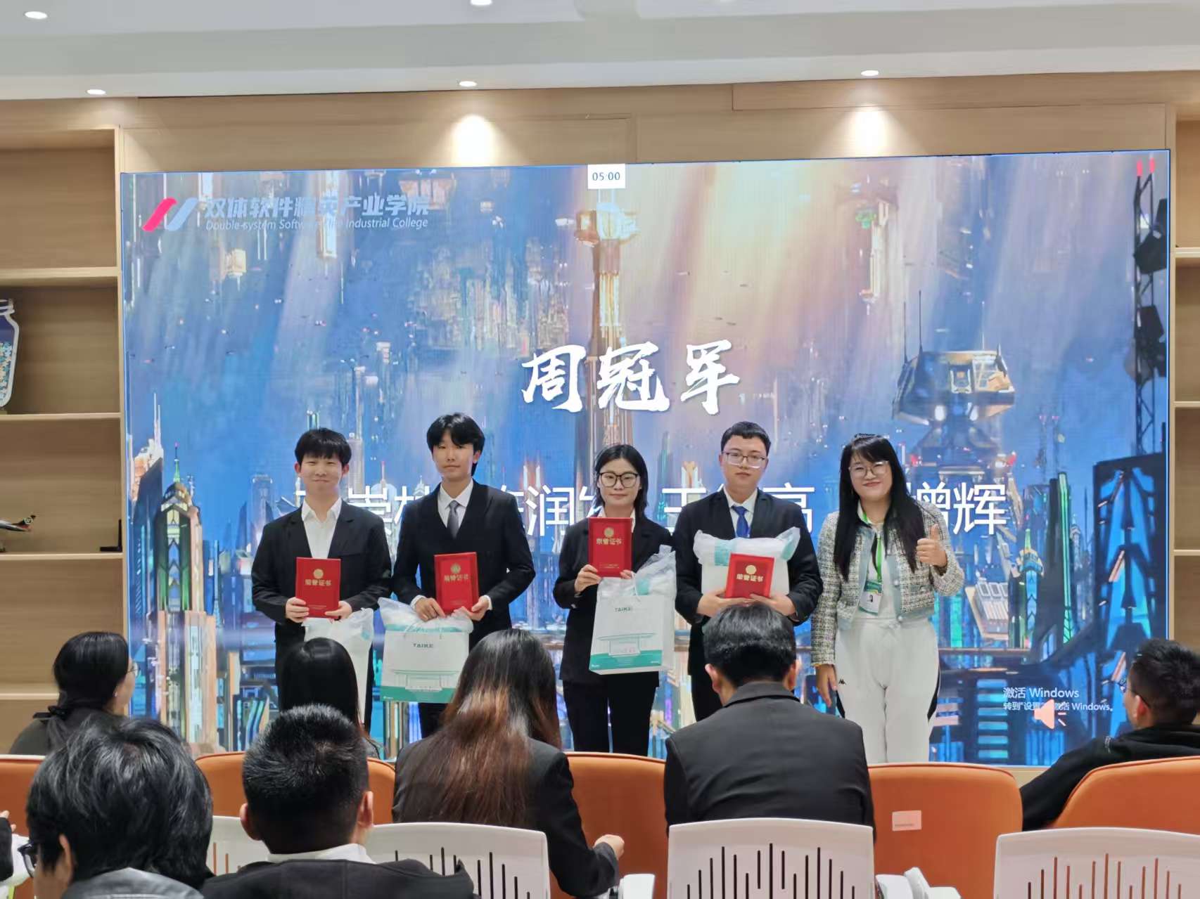 经过激烈角逐,最终四位选手凭借出色的表现脱颖而出,成为本期软约周冠军。他们用实力证明,优秀的软件人才不仅要懂技术,更要善于表达;不仅要会编程,更要懂产品。每一位冠军选手都展现了双体学子独特的风采——他们既能深入技术细节,又能把握用户需求;既能理性分析,又能生动演绎。这正是双体软件精英产业学院育人理念的最佳体现。他们正是: