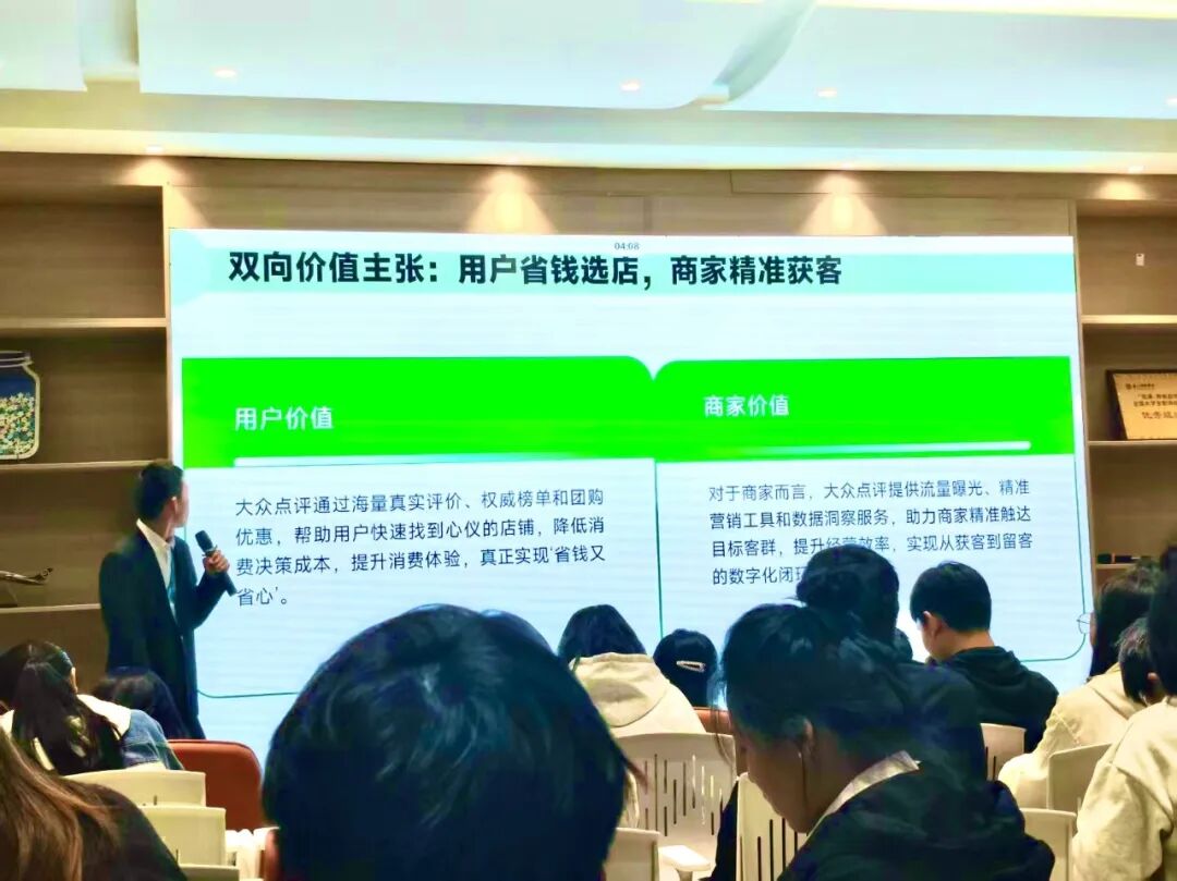王宇鹏作为“天域守护者”,给大家介绍大众点评作为本地生活消费决策平台,从软件定位、优劣对比、隐藏功能到精准评价、榜单推荐等方面,展现助力用户省钱选店、商家精准获客的双向价值。