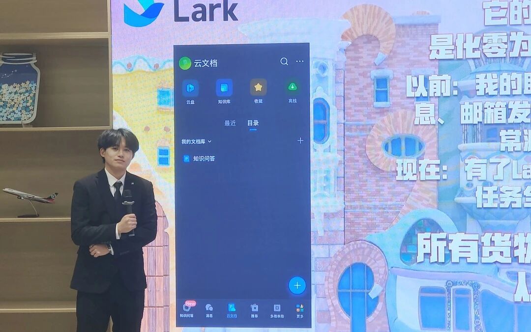 蔡瑞天以“秩序与掌控”为核心,介绍了办公工具Lark。它能整合消息、会议、文档、任务等功能,解决工作中信息分散、任务跟进难、跨空间沟通不便等混乱问题。