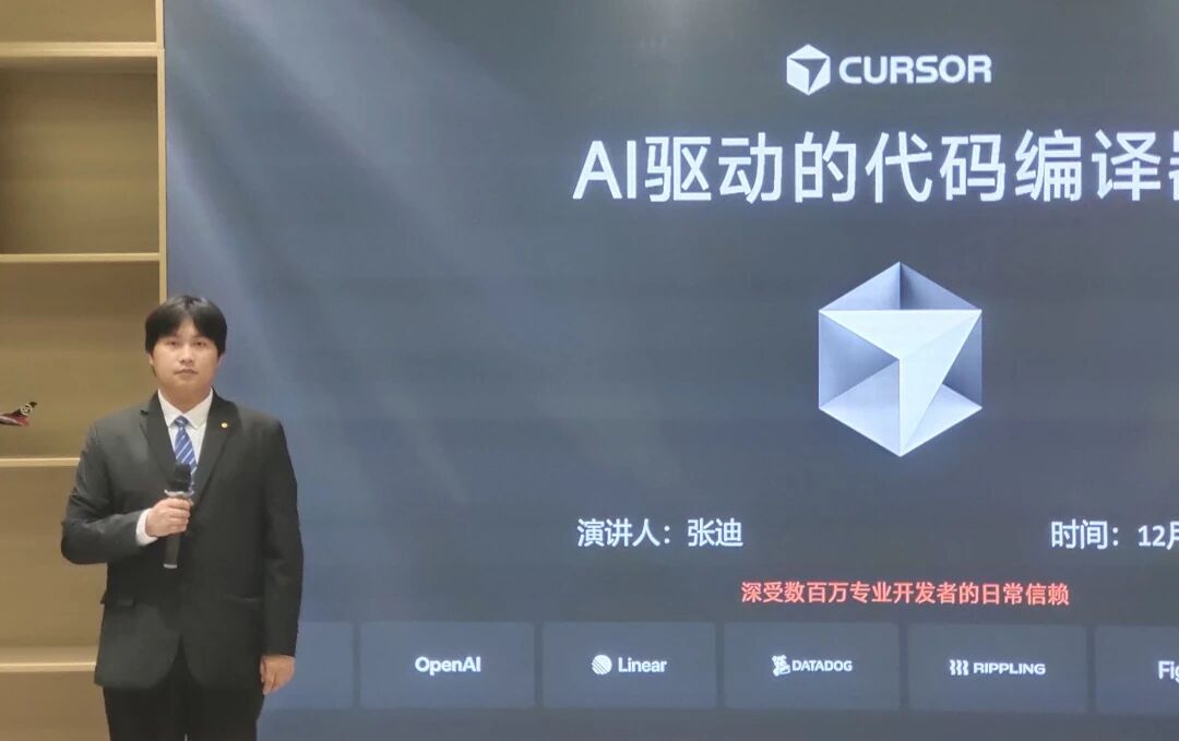 张迪介绍了 AI 驱动的代码编辑器 Cursor,它支持自然语言交互,能读懂代码库、自动关联文件,通过Tab键智能补全、Agent跨文件编辑等核心功能,让编程效率提升3-5倍。