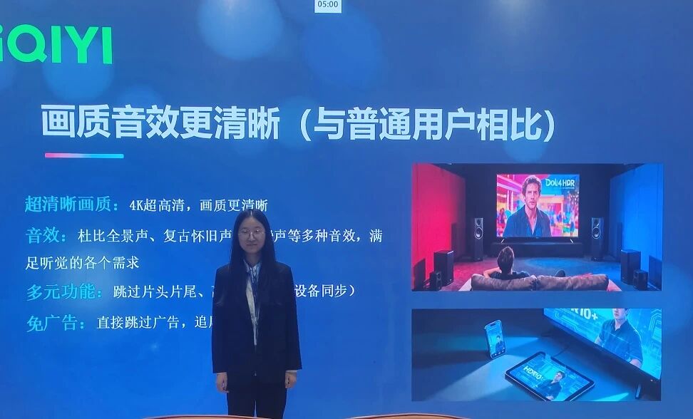 王昊宁介绍爱奇艺会员,核心优势是海量影视、体育等资源,高清画质、多端登录、免广告等特权,且优于腾讯会员;可联动京东 PLUS 等跨平台权益,直通漫画与小说资源;价格实惠、选择灵活,优惠福利多,覆盖各年龄段,满足多元娱乐与生活需求。