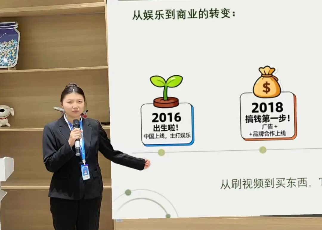 侯冰洋介绍的TikTok主要应用场景为用户创作和分享短视频来展示才艺、记录生活、获取娱乐,同时也是品牌和商家进行营销推广、开展电商带货的重要平台,是一个连接全球用户的短视频社交与商业生态平台。