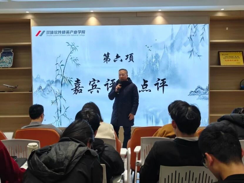 杨克新老师回顾了选手们从项目初期到月赛的成长历程,指出他们在表达能力和舞台表现上已变得更加成熟和自信。希望他们不仅能在双体项目中站稳脚跟,也能在未来的职业发展中走得更高更远。他对选手们表达了深切期望,祝愿他们未来能够讲得更好、成长得更全面。