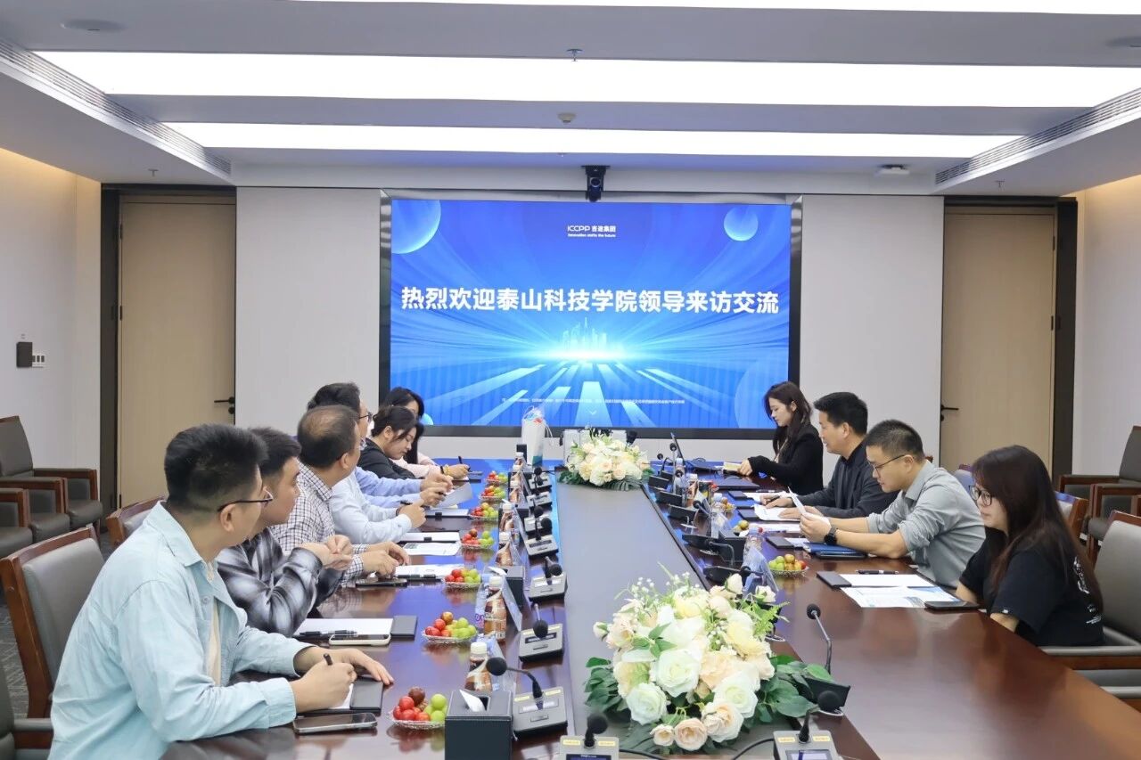 下午,老师们来到深圳科士达科技股份有限公司,公司成立于1993年,2010年深交所上市,深耕储能、光伏逆变器领域,是智慧能源解决方案标杆企业。集团副总裁吴洪立热情接待并参加座谈。吴总详细介绍了企业发展历程,就深耕全球光储市场的最新进展进行了展示,围绕校企合作贴合点进行了重点沟通。丁海奎聚焦学校优势学科,特色育人模式对泰山科技学院进行了介绍。随后,人力资源中心钟经理带老师们参观了企业数据中心展区、新能源展区、充电桩展区,并观摩了解了新能源设备研发制造流程,双方就共建实习实践基地、联合开展技术攻关、毕业生定向招聘等事项达成多项共识。